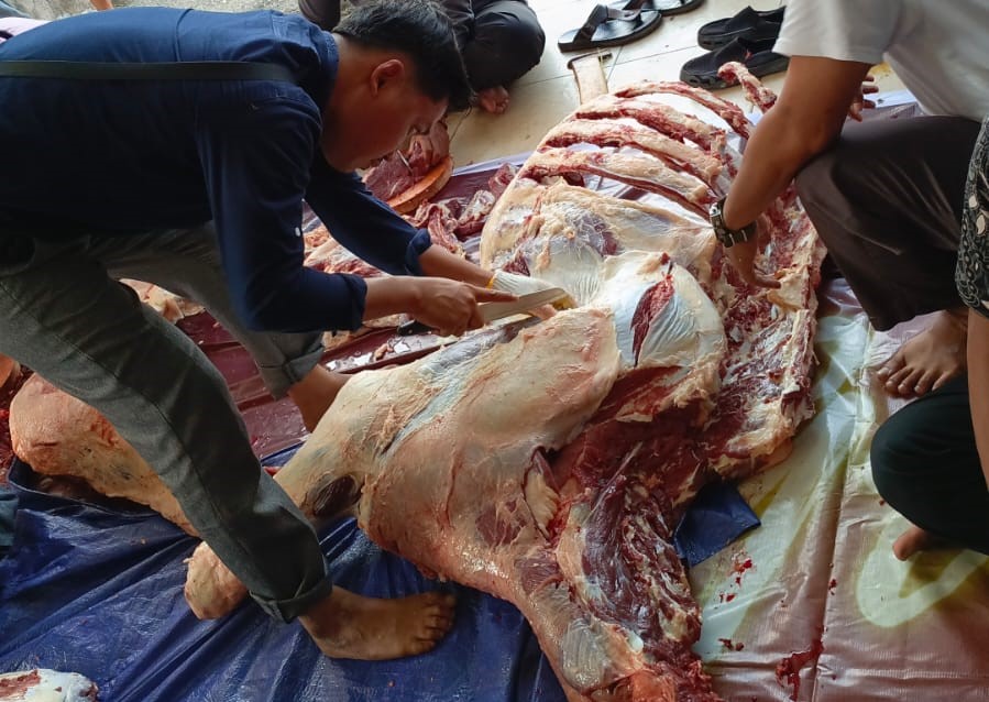 Selanjutnya daging kurban tersebut dibagikan kepada yang berqurban, dan seluruh pegawai civitas akademika Universitas Riau Kepulauan. Penyembelihan hewan kurban ini bermaksud untuk meningkatkan iman dan takwa kepada Allah SWT. Suasana kebersamaan dan kekeluargaan tampak mewarnai pelaksanaan penyembelihan hewan qurban. Sebagian besar karyawan sibuk mengurusi pemotongan, pengulitan, serta pembagian daging kurban.
